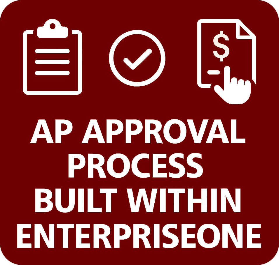 Most available AP Approval solutions on the market today are outside of EnterpriseOne which results in another software to manage, with its own set of rules, maintenance, integration, and terminology to learn. JD Edwards EnterpriseOne already has the key information that is needed for approvals, why complicate that even further with another software? Our AP Approval Solution exists within EnterpriseOne using the data already being processed by your organization, the key benefits are: